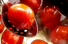 이후에 토마토를 건져 내면 여전히 약간 단단한 상태이지만 겉표면에 주름이 생기고 속살에서 떨어져 나오기도 합니다.