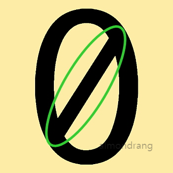 숫자 0을 자세히 보면 오른쪽 위에서 왼쪽 아래 방향으로 사선으로 그어진 모습이 취소선입니다.